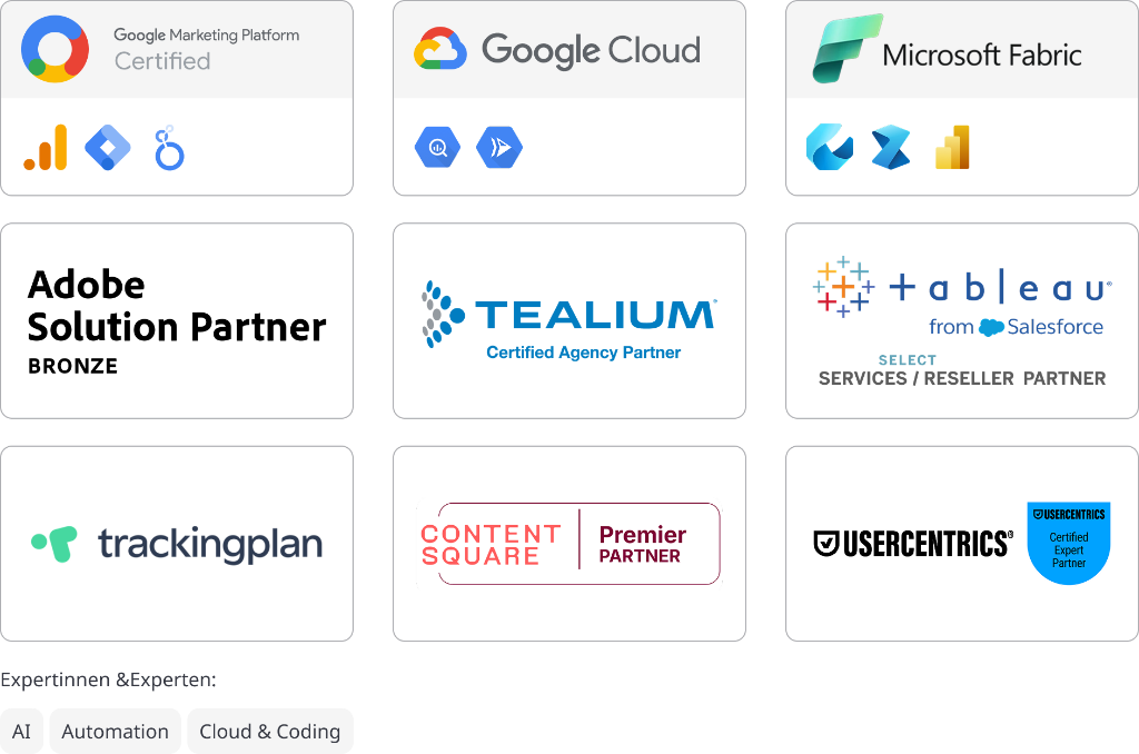Wir arbeiten mit den besten Tools am Markt. Doch Software allein löst keine Probleme – die richtige Anwendung entscheidet. Wir beherrschen diese Plattformen, sind aber nicht auf sie beschränkt. Wir beraten technologie-unabhängig und finden das Setup, das exakt zu Ihren Anforderungen passt.